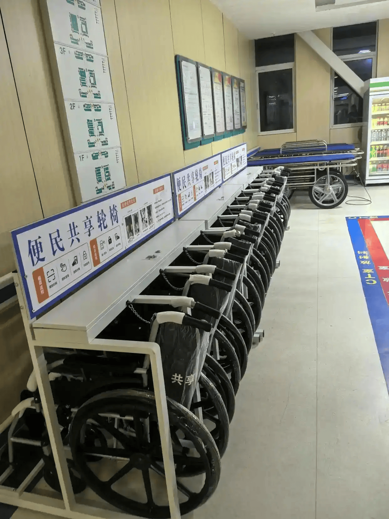 - 运营成本高:传统免费轮椅“买得起、管不好”,北京某三甲医院每年仅采购费用就超500万元,再加上专人登记、定期维护、破损补充的人力与物料成本,长期投入不堪重负;县域医院更是因预算有限,只能少量配备,难以满足需求。