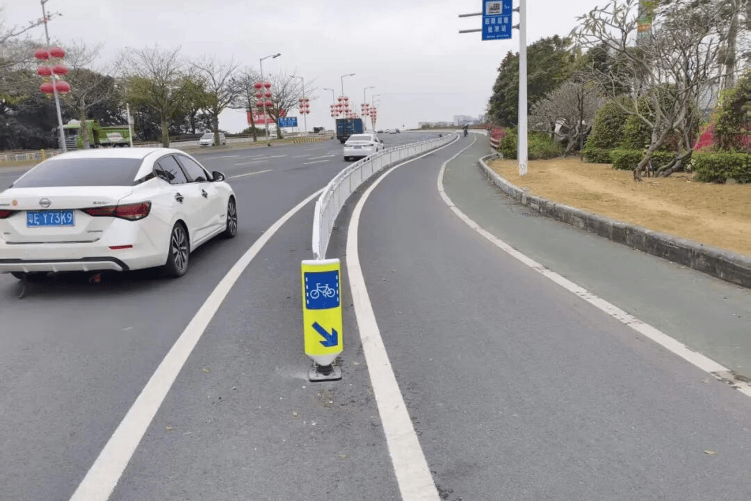 ▶ 沙口大桥横跨禅城与南海,在增设非机动车道的同时,降低桥梁机动车限速,通过“标线+管控”双重保障,化解机非混行风险,守护跨区出行安全。